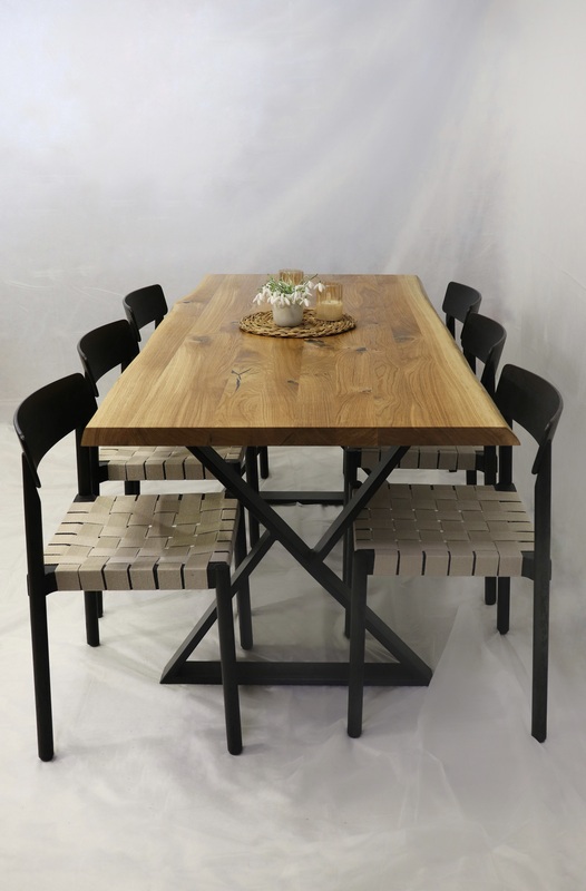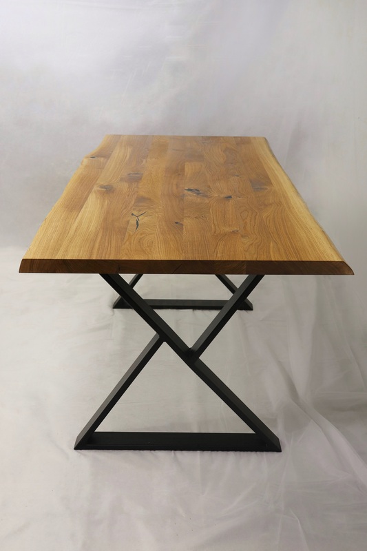 Ozola stumbra galds ar individuālu koka rakstu.