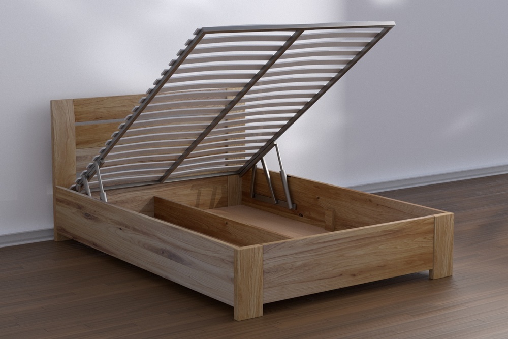 Eleganta, teicamas kvalitātes ozola masīvkoka gulta ar iebūvētu veļas kasti.