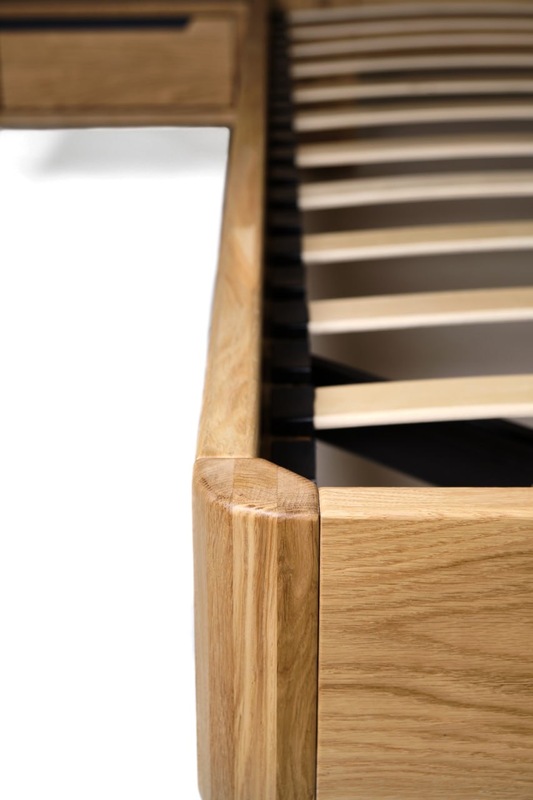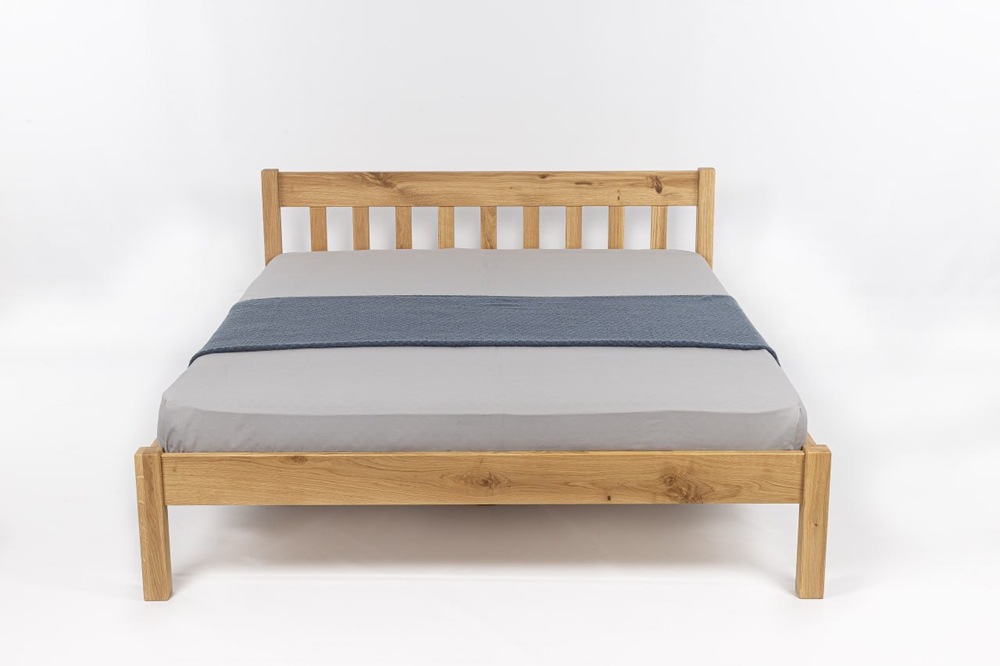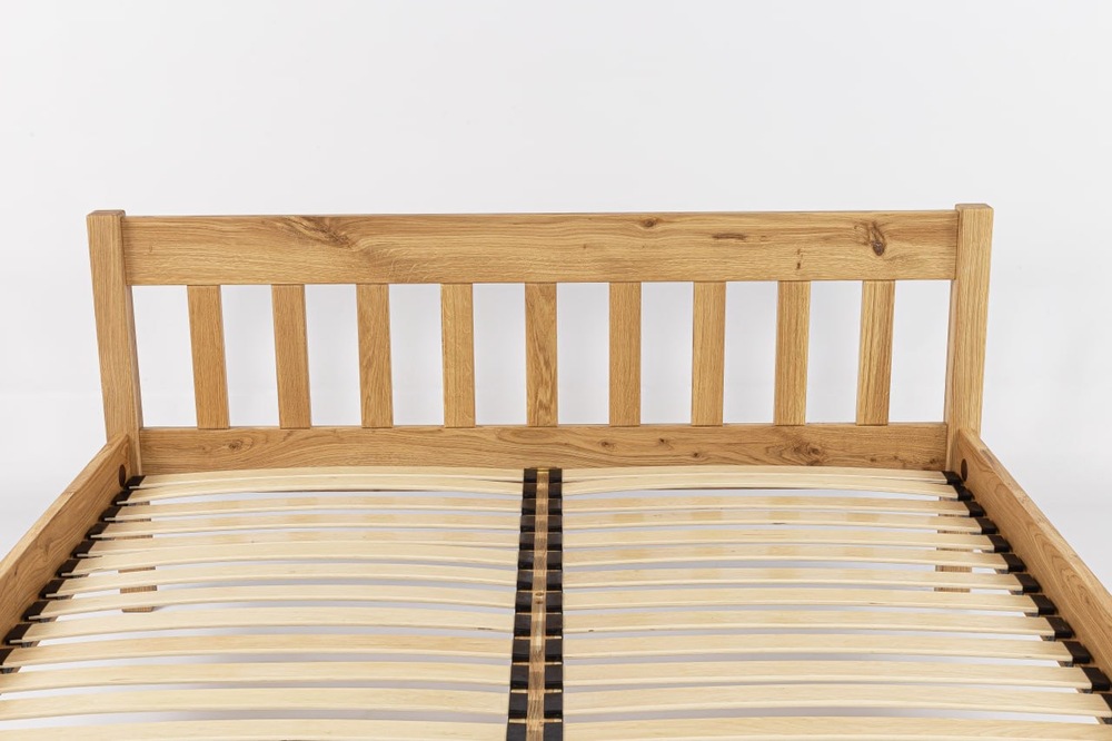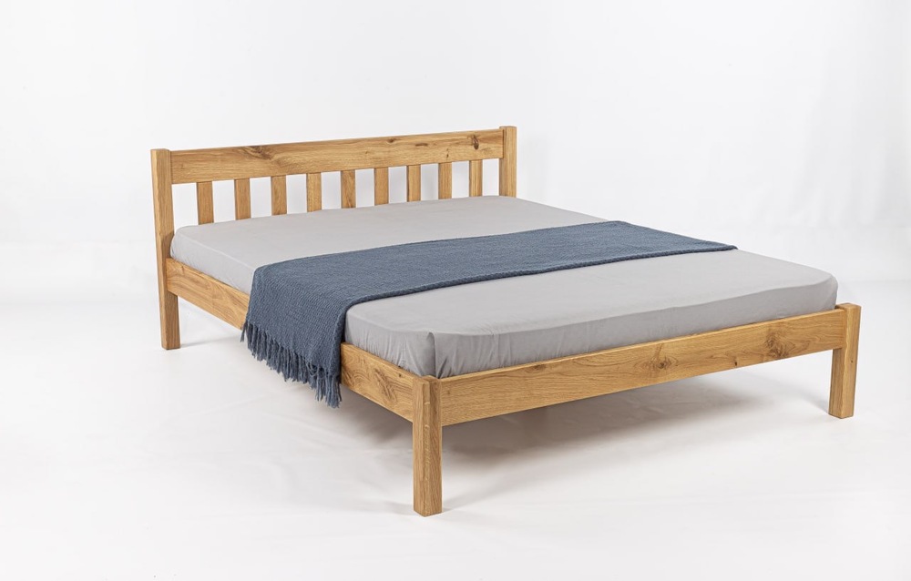 Ozola masīvkoka gulta, kas apstrādāta ar cieto vasku.