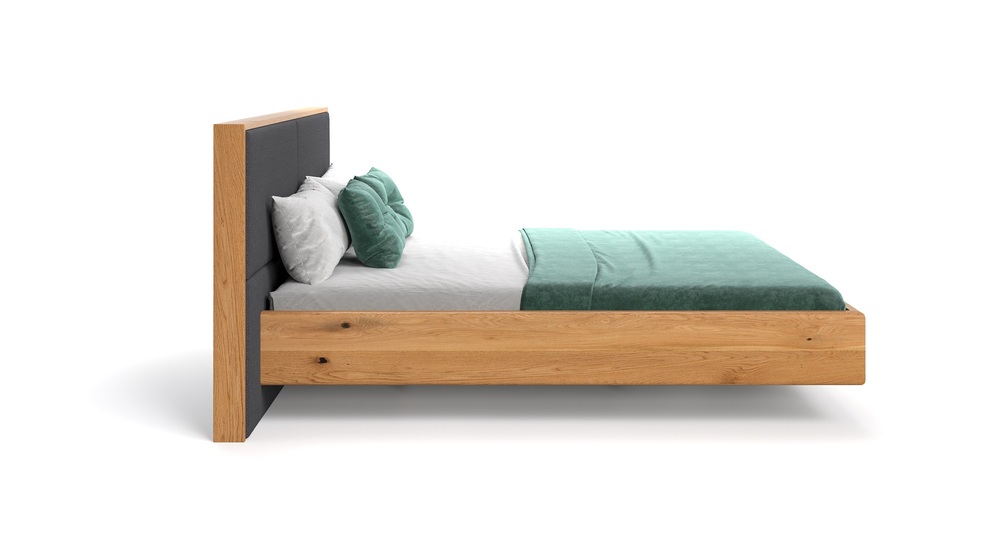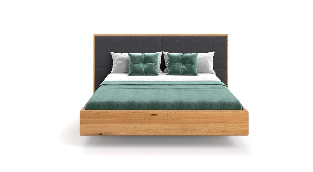 Элегантная плавающая кровать из массива дуба превосходного качества с мягким изголовьем.