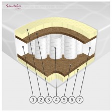 Medium hardness mattress. Thanks to the combination of flexible latex, durable coconut and independent spring block - in the upper part of the mattress - this model is one of the most flexible: it allows you to directly repeat the natural curves of the body, which will ensure you maximum comfort and full sleep.